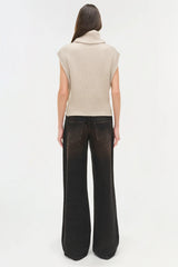 Simkhai's Maple Wool Cashmere Top in Oatmeal. A wool cashmere blend sleeveless top that features a turtleneck and barely grazed shoulders.